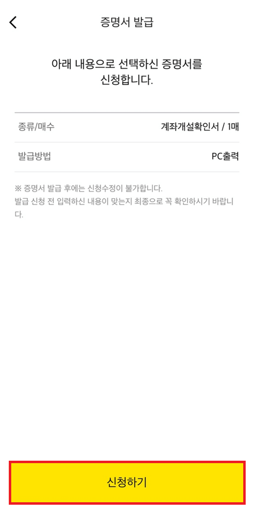 카카오뱅크 통장 사본 모바일을 이용한 발급 방법 2